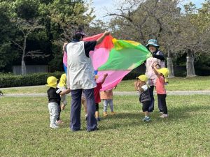とっても広ーい広場でバルーンを広げてパタパタ皆で動かし楽しんだり