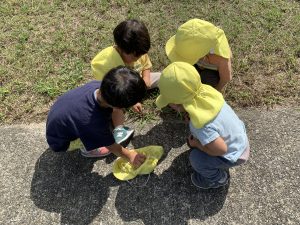 よく拾ったり捕まえたりして「先生見て~!」見せに来てくれます🐛💕