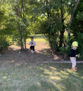 広場に着くと「きゃ~💕」駆け出し、木々のトンネルを抜けたり、「あ~✨」と