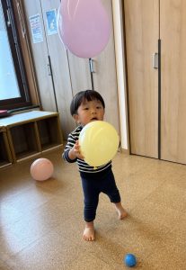 風船を上にぽーい🎶🎶と投げてキャーと追いかけている子がいました😄😄