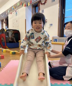 サーキット遊びでは、滑り台をつるーんと滑ったり